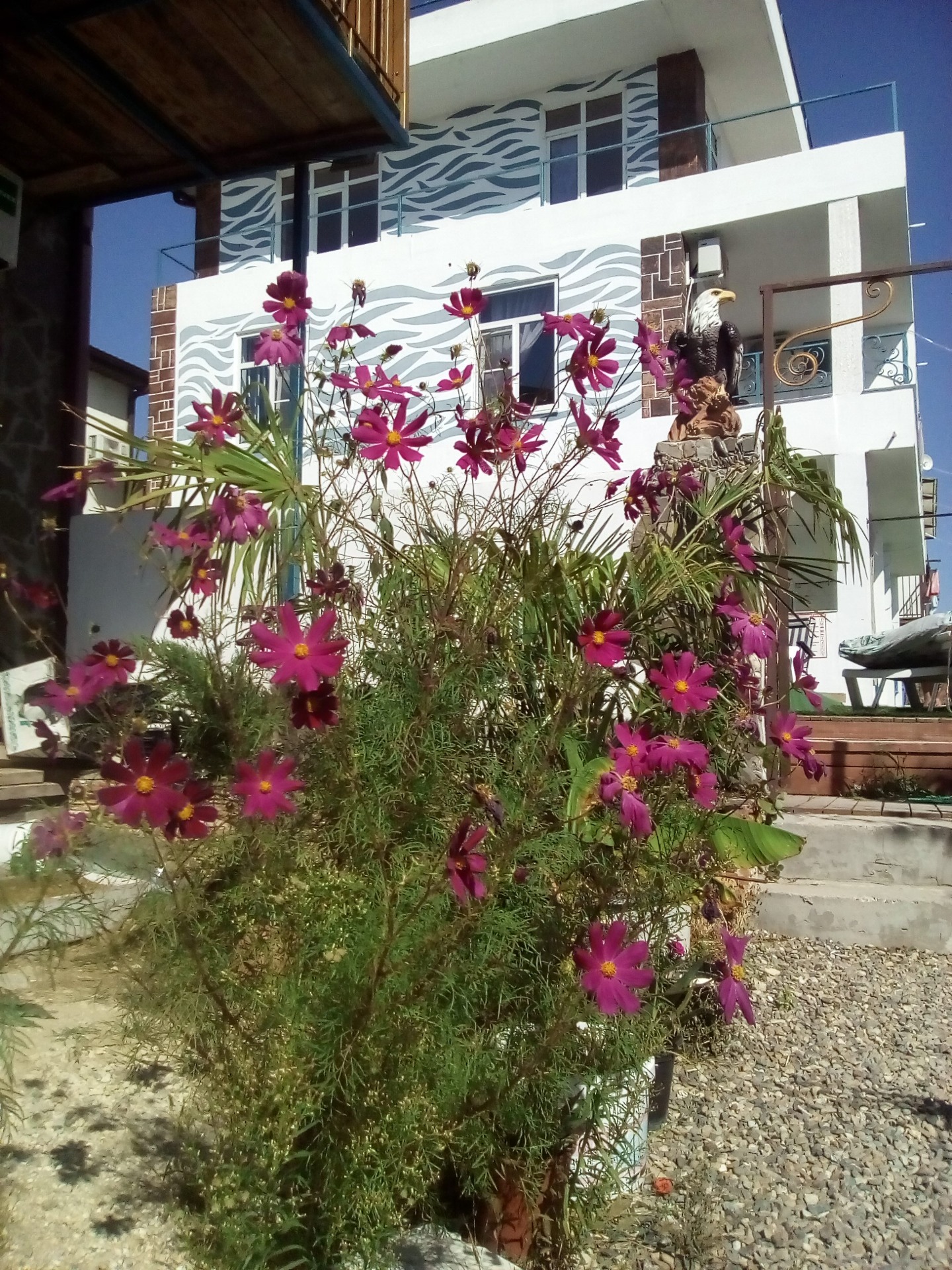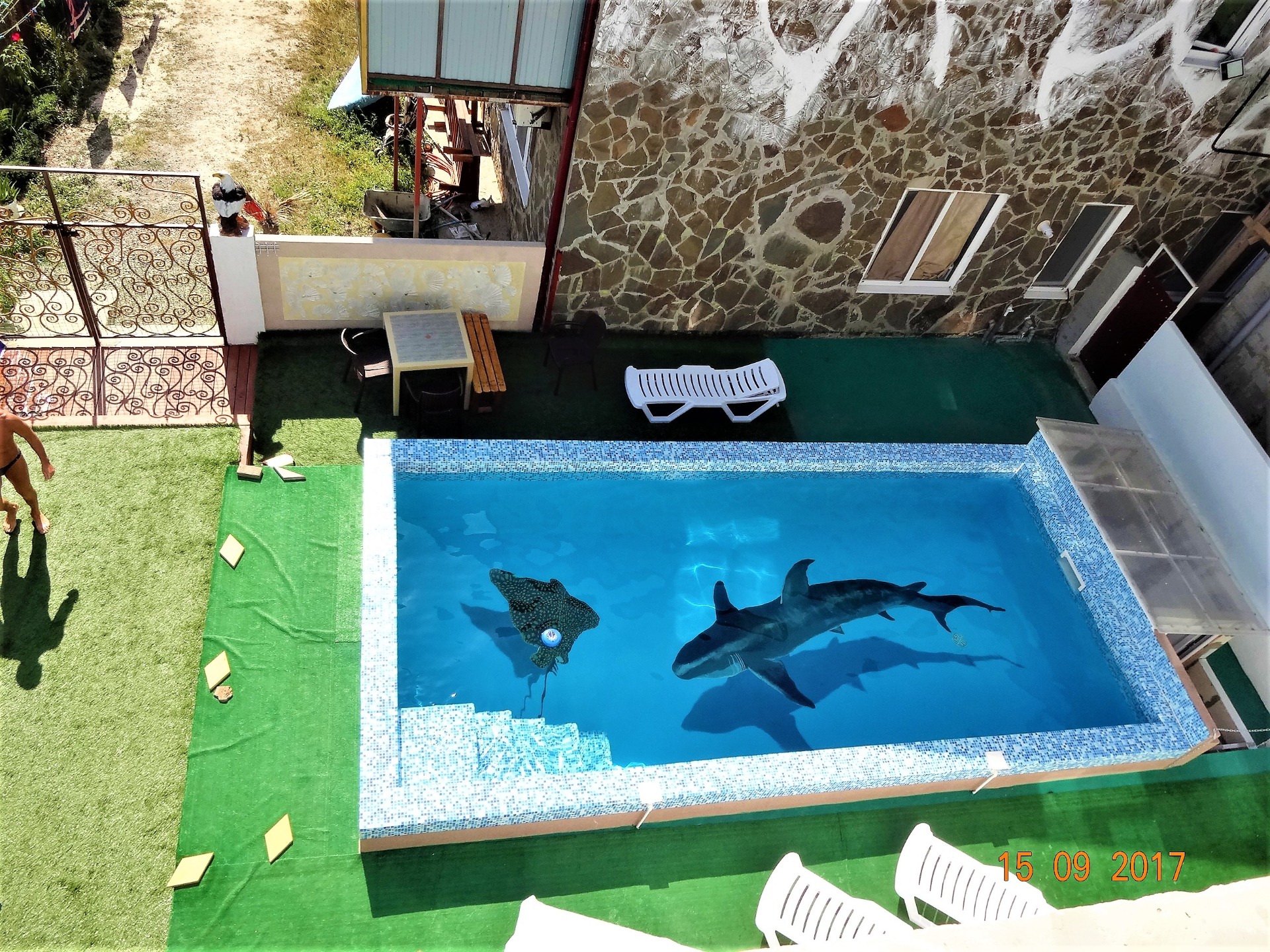 Новый корпус запущен в 2019 году, все номера современного типа с новой мебелью, дизайнерский проект. В каждом номере туалет, душ, сплит система, холодильник, миникухня, вид из окон на бассейн и пруд с фонтаном. На первом этаже комнаты с отдельными входами и со своей террасой, рассчитаны на 4-х человек ОРХИДЕЯ и СИРЕНЕВЫЙ. На втором этаже 3- х комнатный номер на 6 человек, в каждой комнате ЖК ТВ, комод, сплит система, кровати, большой балкон с видом на озеро с фонтаном номер РАДУГА. Так же на втором этаже 2-х комнатный номер МАЛЕ на 4-х человек, комнаты раздельные, в каждой комнате ЖК ТВ, сплит система, холодильник, комод, тумбочки, вешалки, на балконе миникухня. В стоимость каждого номера входит пользованием двумя детскими площадками, 2-мя бассейнами взрослым и детским, тренажерным залом. бесплатный интернет и парковка для машин. До моря 150 м До прекрасной столовой 30 м.