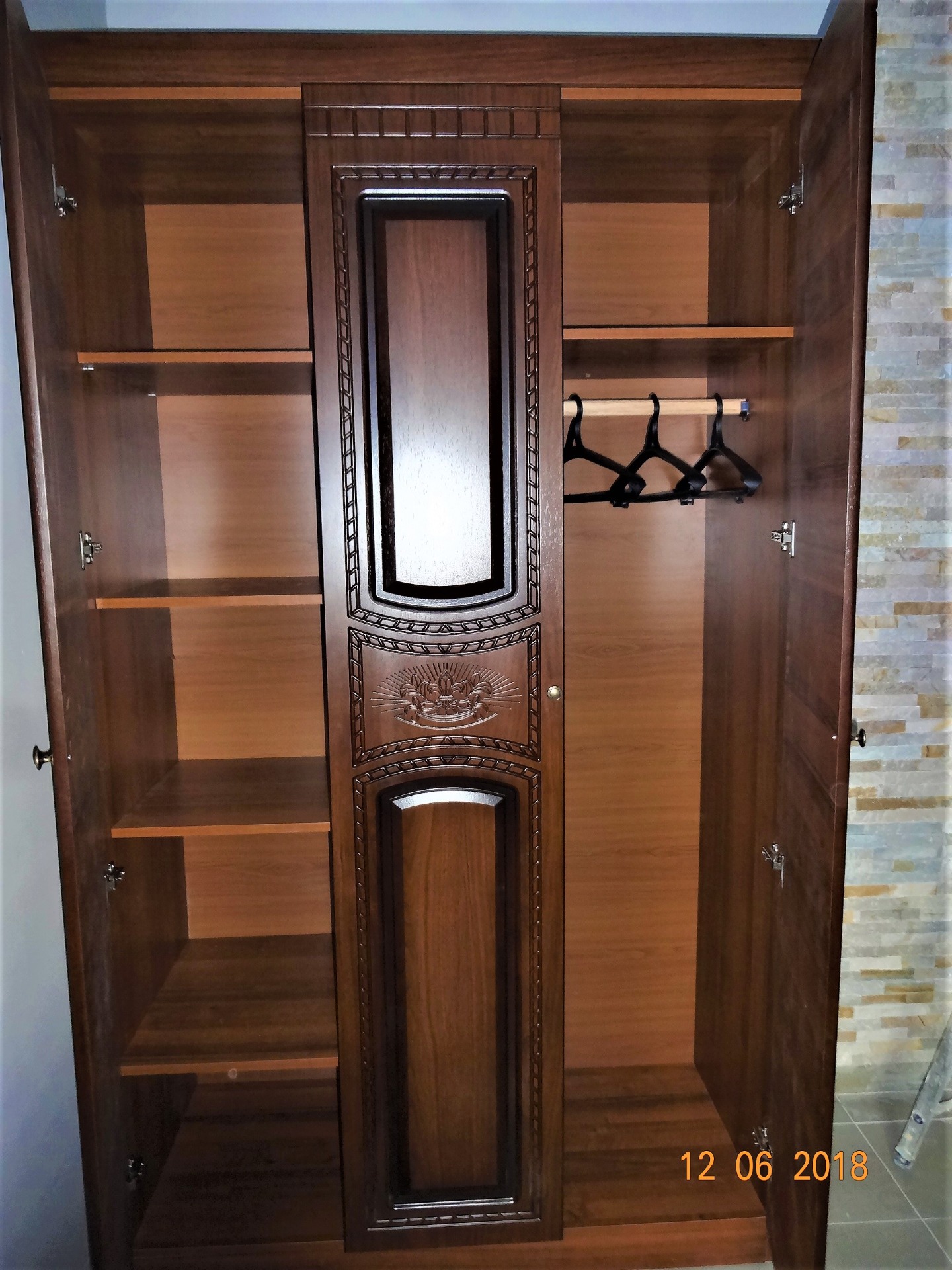 В одной комнате две кровати, тумбочки, комод, ЖК ТВ, сплит система, холодильник, вешалка. В другой комнате большая двухспальняя кровать, комод, тумбочки, место для вещей, ЖК ТВ, сплит система, холодильник. Туалет, душ, большой балкон со своей миникухней (посуда, эл.чайник, эл. плитка, микроволновка), стол и стулья.